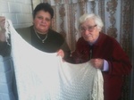 С удивление узнаем, что шаль связанна учительницей Старобинской школы Куделко Ольгой Афанасьевной. Материал для шали использовался необычный… В окрестных лесах было немало немецких парашютов, и девушки срезали с них стропы, которые потом раскручивали, извлекая из середины красивые белые тонкие нити (верхние нити были серыми).