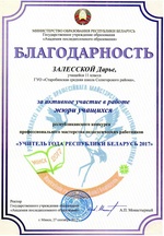 26-27 сентября 2017 года учащаяся нашей школы Залесская Дарья приняла участие в работе жюри учащихся