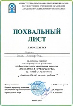 «Похвальный лист» за активное участие Международном фестивале профессионального мастерства педагогов и за победу в номинации «Представление опыта работы» - высокая оценка моего труда.